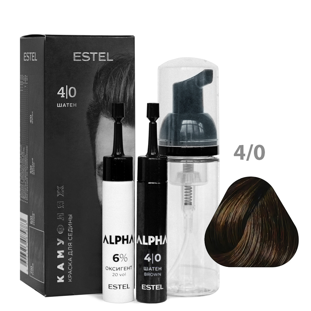 ESTEL Краска-камуфляж ALPHA 4/0 Шатен (Ампула с краской, оксигент 6%,пенообразователь)