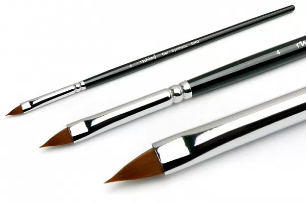 Плоская кисть из синтетического волокна, в форме лепестка с заострённым кончиком.
