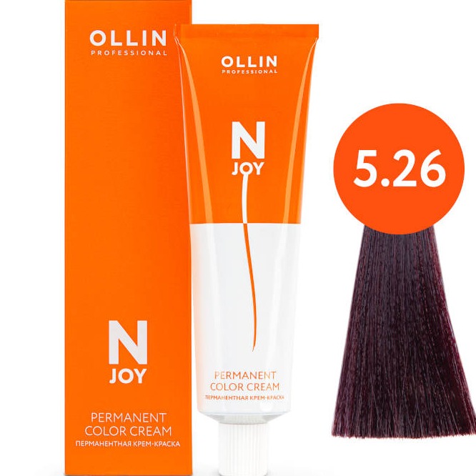 OLLIN PROFESSIONAL N-JOY - перманентная крем-краска для волос, 5/26 светлый шатен фиолетово-красный, 100 мл