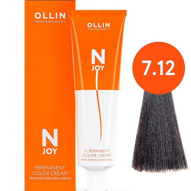 OLLIN PROFESSIONAL N-JOY - перманентная крем-краска для волос, 7/12 русый пепельно-фиолетовый, 100 мл