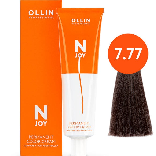 OLLIN PROFESSIONAL N-JOY - перманентная крем-краска для волос 7/77 русый интенсивно-коричневый, 100 мл